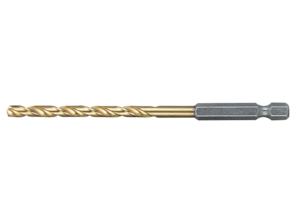Vrták HSS-TIN dle DIN 338 s úhlem špičky 135°. S 1/4" šestihranným pohonem (DIN 3126). Vhodné pro vrtání v nelegované a legované oceli, mědi, bronzu a tvrdých plastech. Pro použití rovněž v rázových utahovácích s příslušným uchycením nástroje.Doplňkové parametry