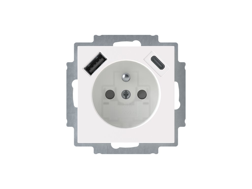 Zásuvka 1násobná s kolíkem, s clonkami, s nabíjením USB-A, USB-C
