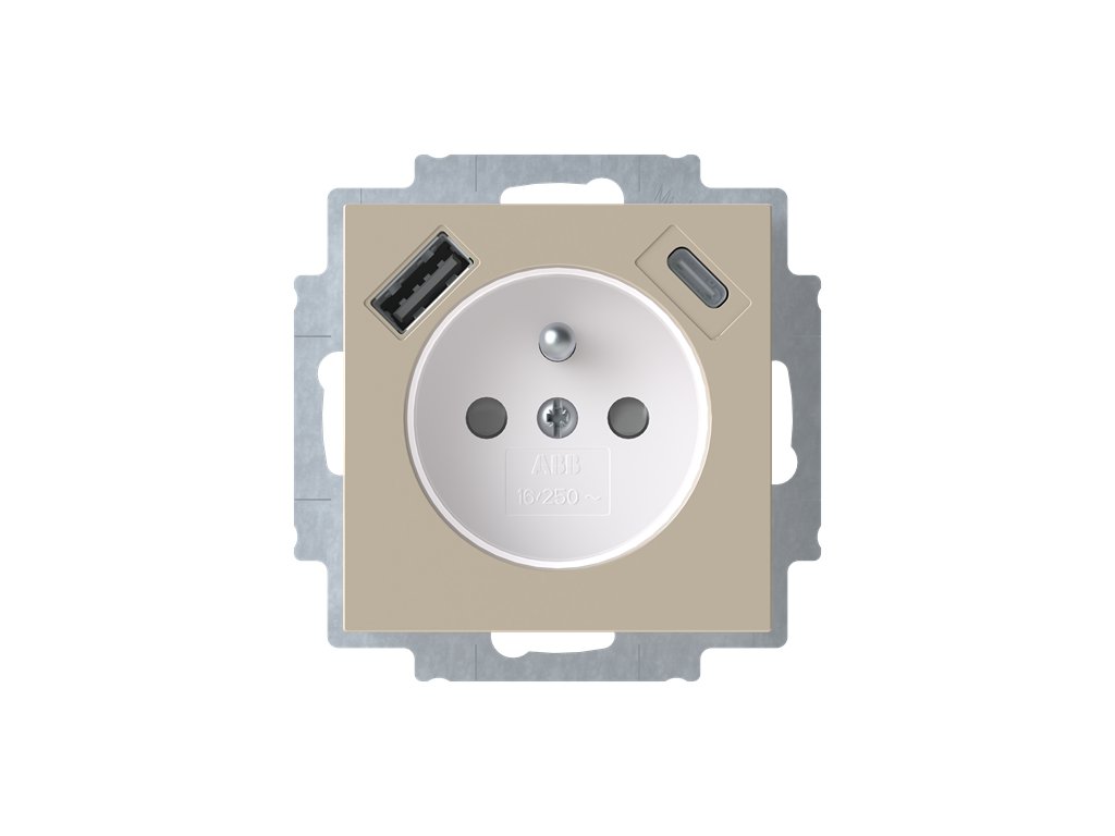 Zásuvka 1násobná s kolíkem, s clonkami, s nabíjením USB-A, USB-C