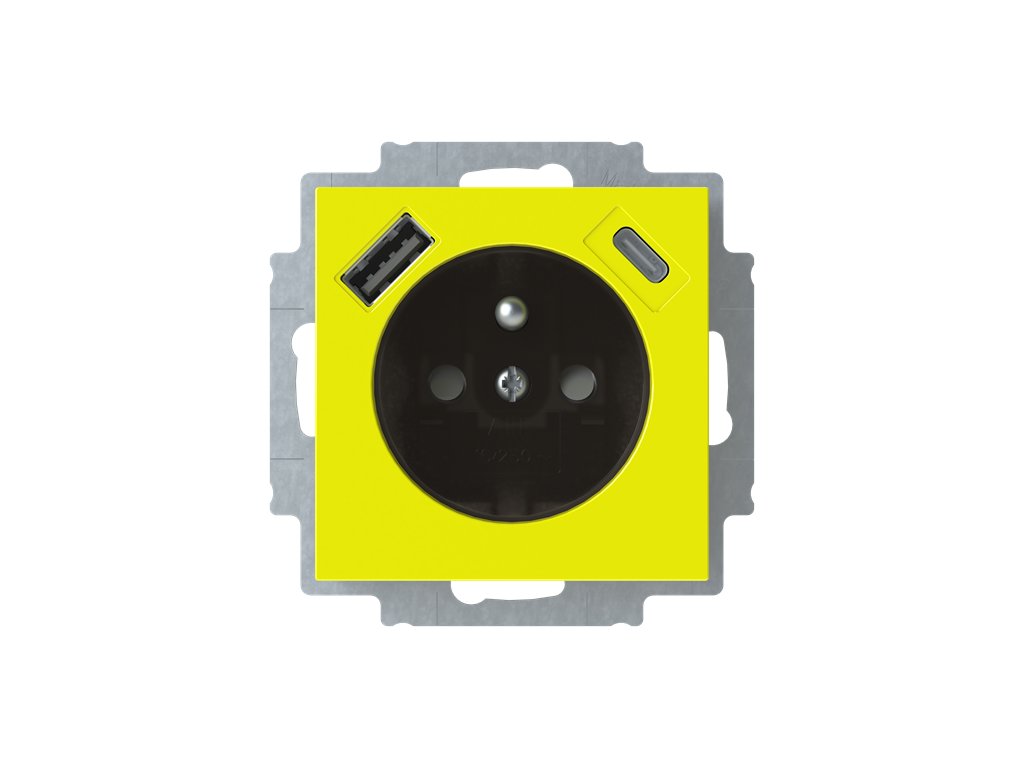Zásuvka 1násobná s kolíkem, s clonkami, s nabíjením USB-A, USB-C