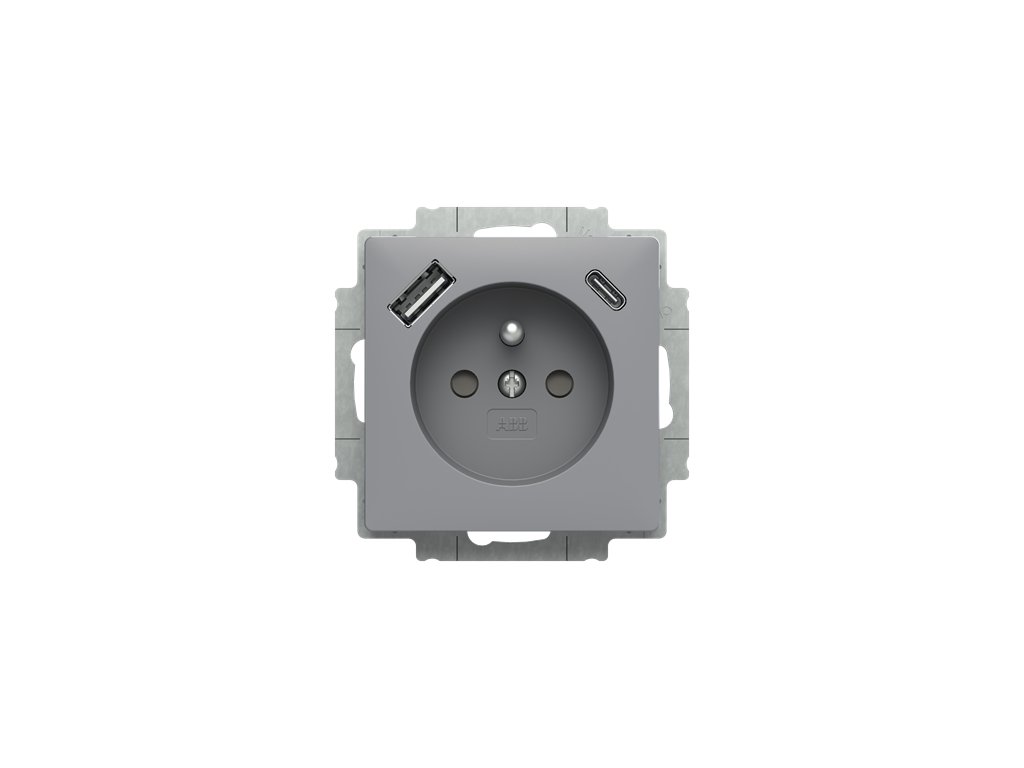 Zásuvka 1násobná s kolíkem, s clonkami, s nabíjením USB-A, USB-C