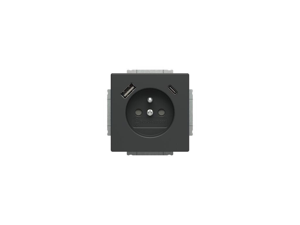 Zásuvka 1násobná s kolíkem, s clonkami, s nabíjením USB-A, USB-C; antracitová; 20 MUCB2USBAC-81-500Doplňkové parametry