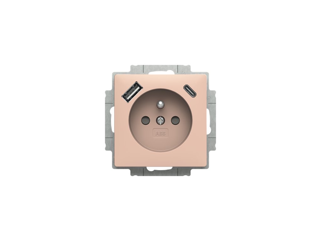 Zásuvka 1násobná s kolíkem, s clonkami, s nabíjením USB-A, USB-C