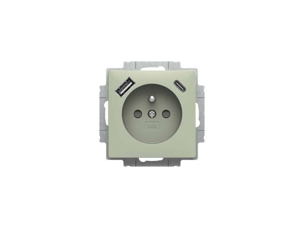 Zásuvka 1násobná s kolíkem, s clonkami, s nabíjením USB-A, USB-C