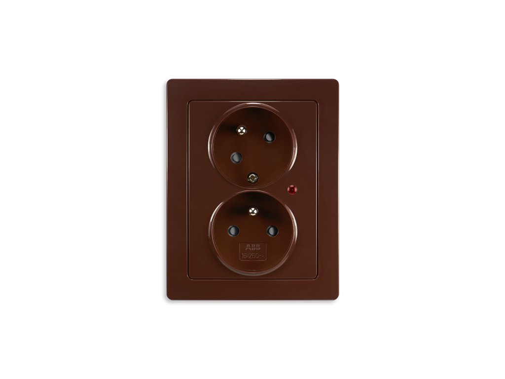Zásuvka 2násobná s natočenou dutinou, s přep. ochr., s optickou sig.; hnědáDoplňkové parametry