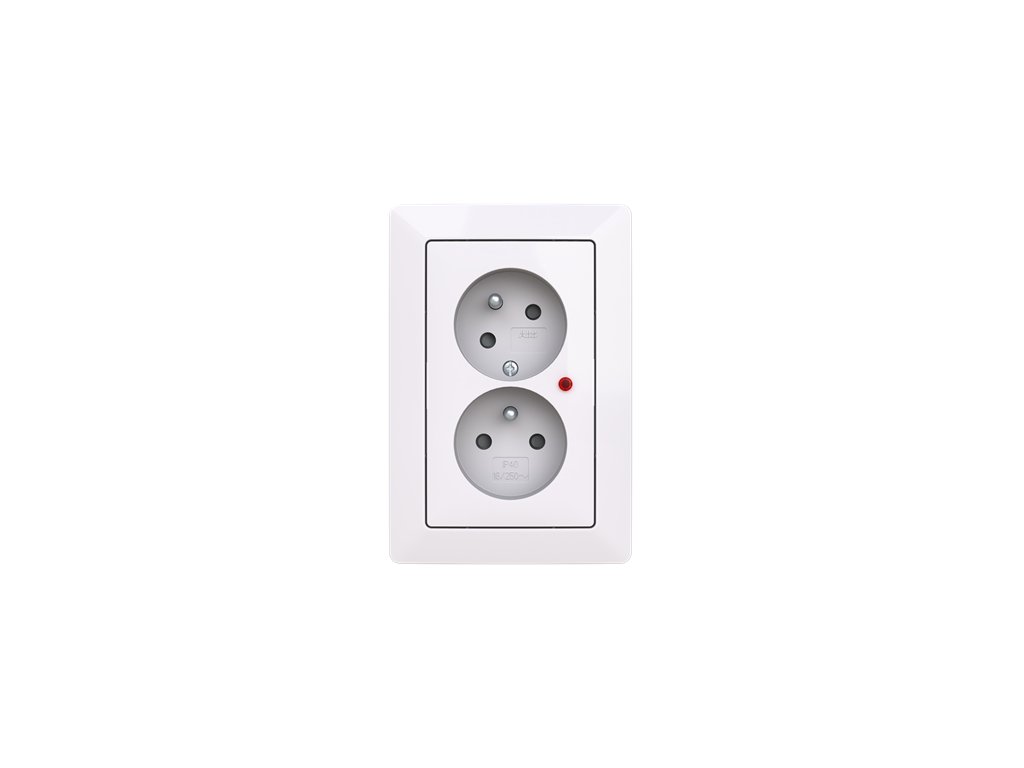 Zásuvka dvojnásobná, s clonkami, s natočenou dutinou, s ochranou před přepětím