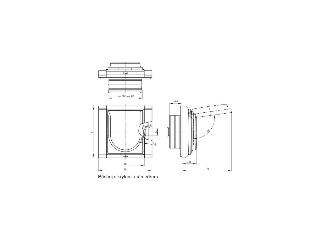 Přístroj splňuje stupeň krytí IP 44 při montáži na svislou, hladkou a neporézní stěnu.