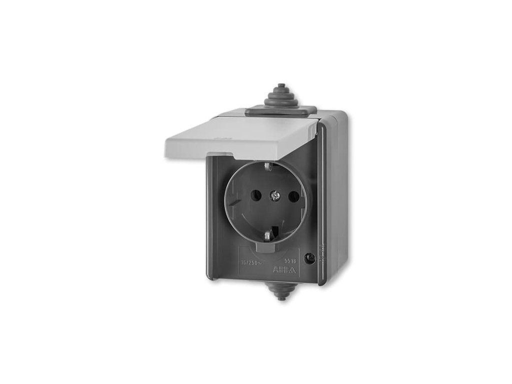 Zásuvka jednonásobná IP44, s bočními kontakty), s víčkem; šedáDoplňkové parametry