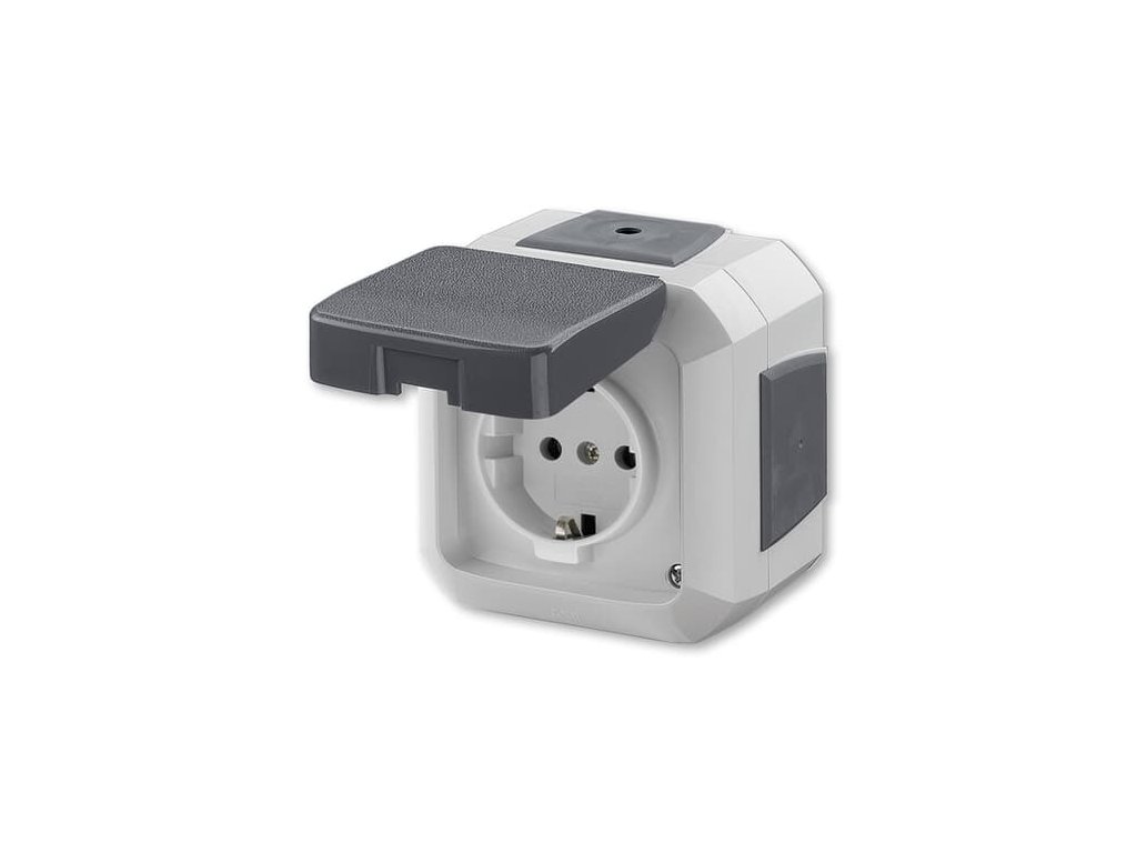 Zásuvka jednonásobná IP54, s bočními kontakty), s víčkem