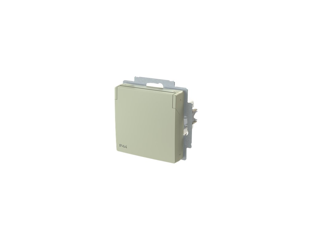 Zásuvka jednonásobná s bočními kontakty, s clonkami, s víčkem, IP44