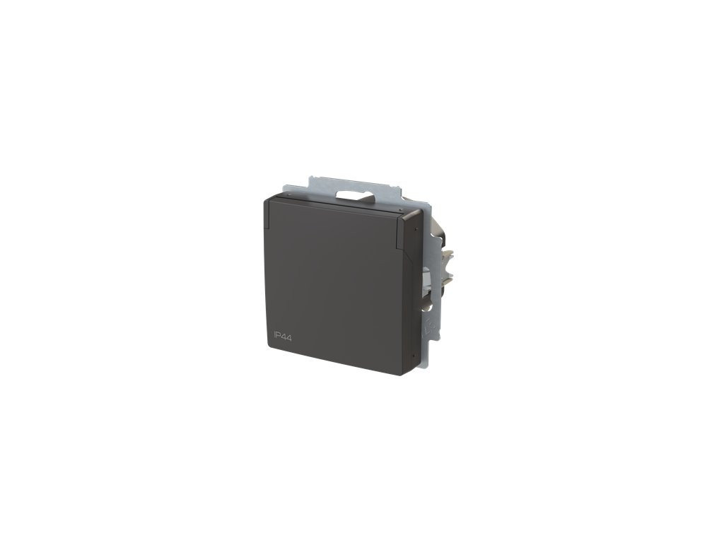 Zásuvka jednonásobná s bočními kontakty, s clonkami, s víčkem, IP44
