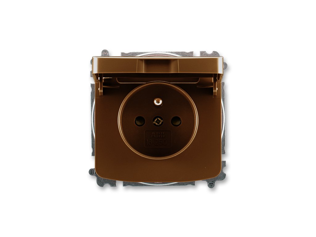 Zásuvka jednonásobná s clonkami a víčkem hnědá 5519A-A02397 H