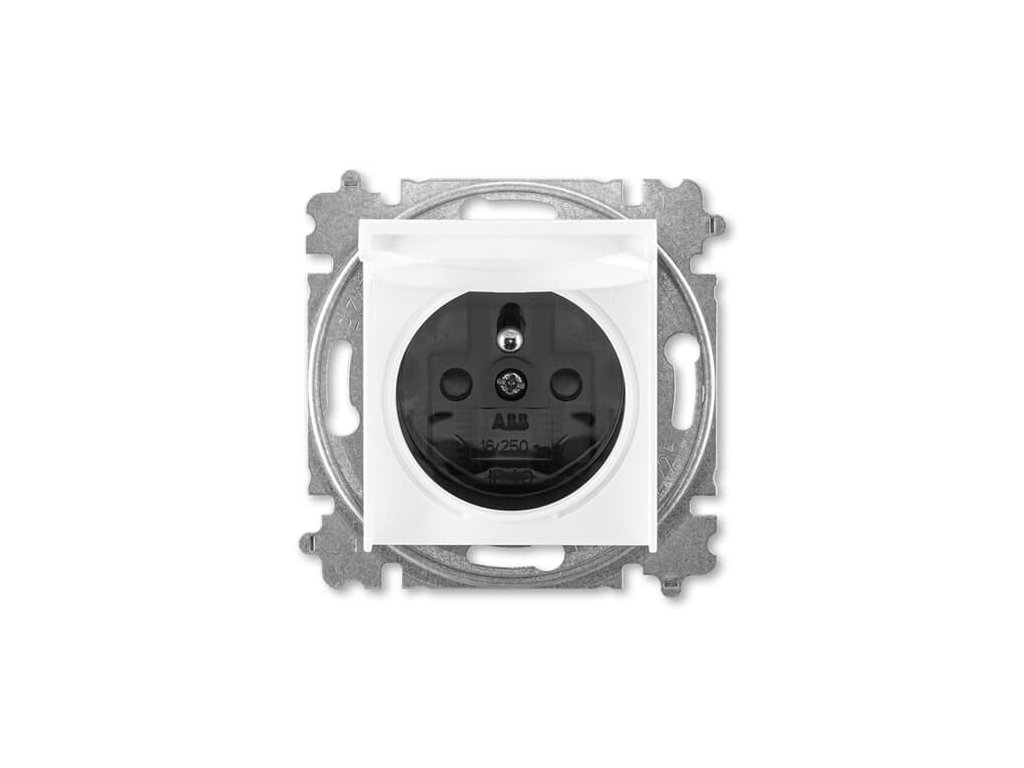 Zásuvka jednonásobná s ochranným kolíkem, s clonkami, s víčkem (typ 6619); bílá / kouřová černáDoplňkové parametry