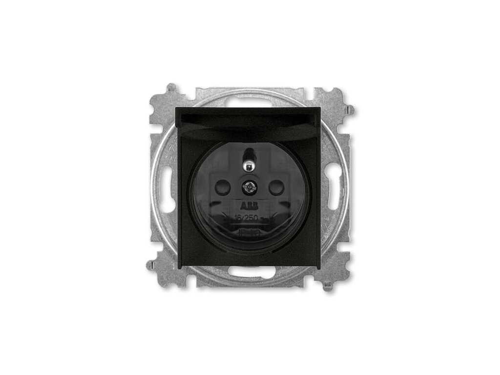Zásuvka jednonásobná s ochranným kolíkem, s clonkami, s víčkem (typ 6619); onyx / kouřová černáDoplňkové parametry
