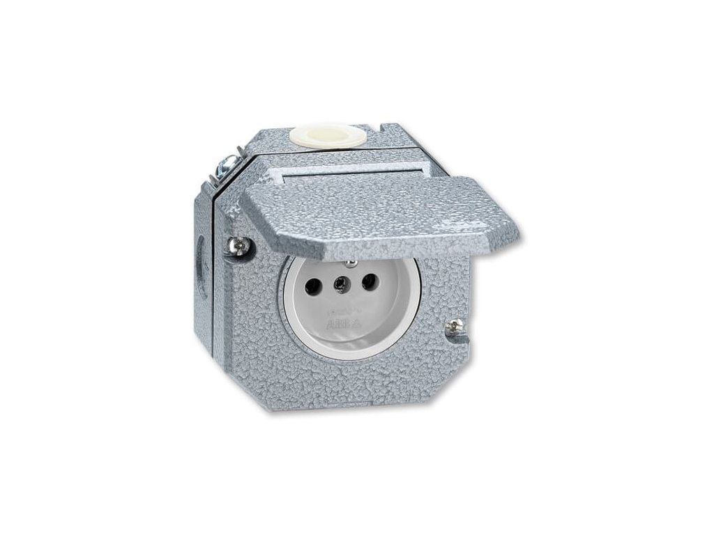 Zásuvka jednonásobná s víčkem, Al, IP55