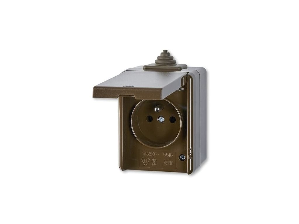 Zásuvka jednonásobná s víčkem, s ochranou před přepětím, plast, IP44