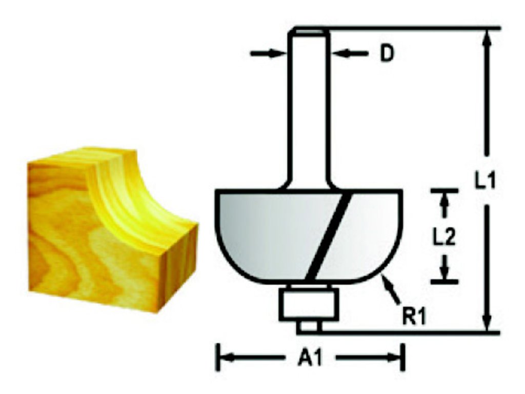 Frézka se stopkou 8 mm, průměrem 15,9 mm, pracovní délkou 6,35 mm a celkovou délkou 49 mm.Doplňkové parametry